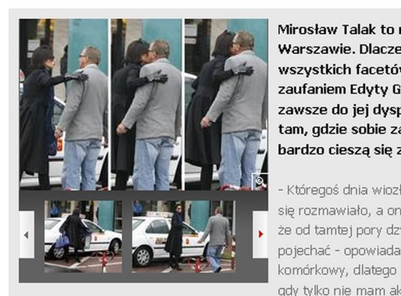 Jak zaczęła się ta znajomość? "Któregoś dnia wiozłem panią Edytkę. I tak nam dobrze się rozmawiało, a ona była zadowolona z moich usług, że od tamtej pory dzwoni tylko po mnie, gdy ma gdzieś pojechać . Ma mój numer komórkowy, dlatego zawsze jestem do jej dyspozycji, gdy tylko nie mam akurat klientów" - zdradza "Super Expressowi".