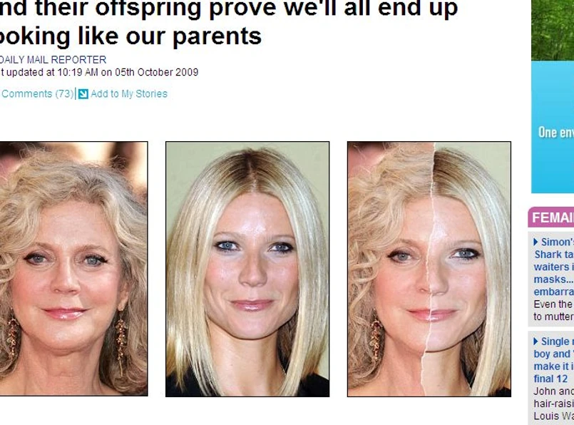 Na początek piękna matka Blythe Danner i piękna córka Gwyneth Paltrow, które razem tworzą piękny "komplet". Nikt chyba nie zaprzeczy, że Gwyneth nie jest specjalnie podobna do swojej mamy - panie reprezentują zupełnie odmienne typy urody. Mimo to przy zestawieniu połówek ich twarzy w całość okazuje się, że "Blythneth" prezentuje się całkiem, całkiem.
