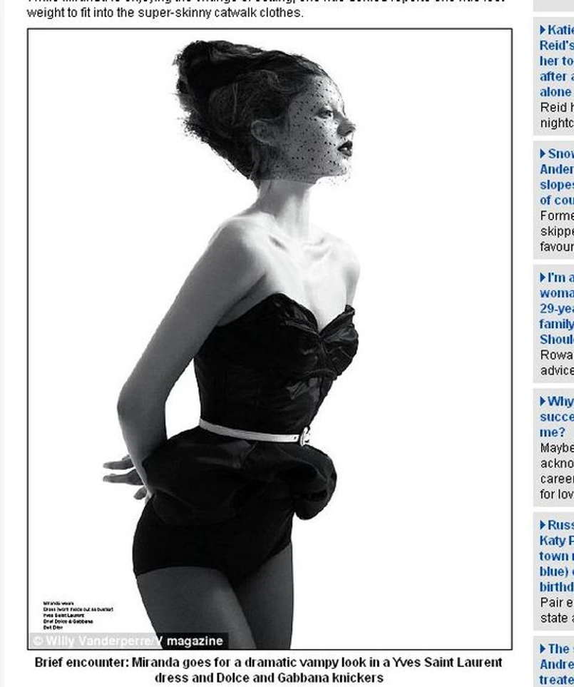 Niedawno plotkowano o tym, że bardzo szczupła modelka jeszcze schudła. Sama Kerr odniosła się do tych plotek nerwowo. Przekonywała, że na zdjęciach tylko wygląda chudo, a w rzeczywistości nie straciła na wadze. I rzeczywiście, najnowsze zdjęcia pokazują Mirandę zdrową i atrakcyjną.