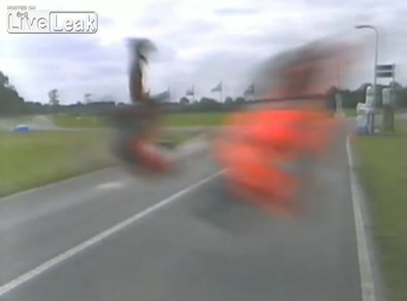 To cud, że motocyklista wyszedł z opresji cało. Gorzej z motocyklem...