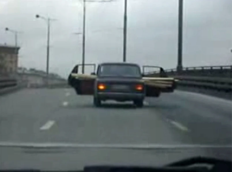 Masz ładunek, który nie mieści się w bagażniku osobowego auta? Nie masz ochoty wydawać pieniędzy na wynajęcie ciężarówki? Zawsze można zastosować rosyjskie rozwiązanie. Wpadł na nie kierowca łady, który musiał przewieźć długie deski. Choć specjalnie bezpieczne to nie jest.