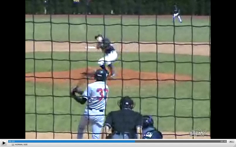 Miotacz drużyny Notre Dame, Wade Korpi, miał sporo szczęścia. Baseballowa piłka odbita przez pałkarza przeciwnej drużyny trafiła go prosto w głowę.