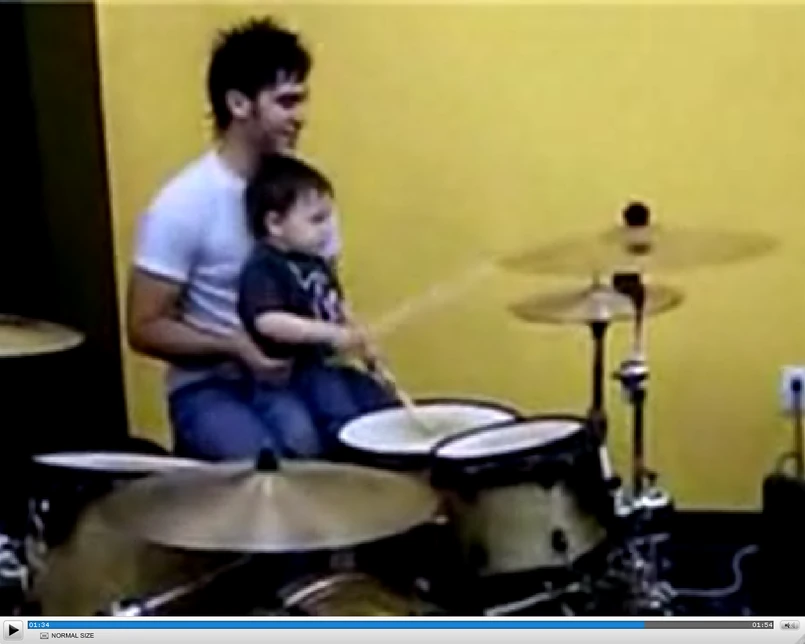 Coraz młodsze te cudowne dzieci-muzycy. Niedawno chwaliliśmy się polskim kilkulatkiem grającym na perkusji. Właśnie zdeklasował go dwulatek. Oczywiście sporo przed nim, ale początki obiecujące.