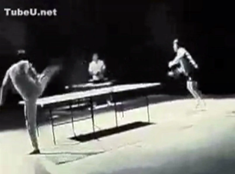 Odnaleziono stare nagrania mistrza walk wschodnich Bruce'a Lee. Okazuje się, że w swojej krótkiej karierze aktora i zabijaki Lee znalazł czas na grę w ping ponga. Zamiast paletek, plastikową piłeczkę odbijał nunchaku. Eh... czego to dziś na komputerze nie da się zmontować.