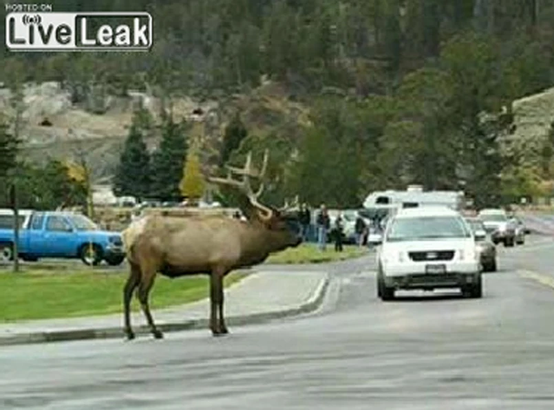 Na szczęście kończyło się tylko na otarciach karoserii, ale corrida, w której to jeleń jest matadorem, wygląda bardzo zabawnie. Zobaczcie sami.