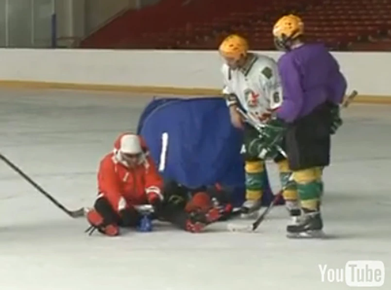 Wszystko gotowe. Sprzęt spakowany, liny przytroczone, raki założone na buty. Można wyruszać na wspinaczkę. Tyle tylko, że francuski happener Remi Gaillard postanowił zdobyć... lodowisko. A tam trenowali hokeiści. A oni, jak to oni, sprawę załatwili po swojemu i wykopali go za bandę.