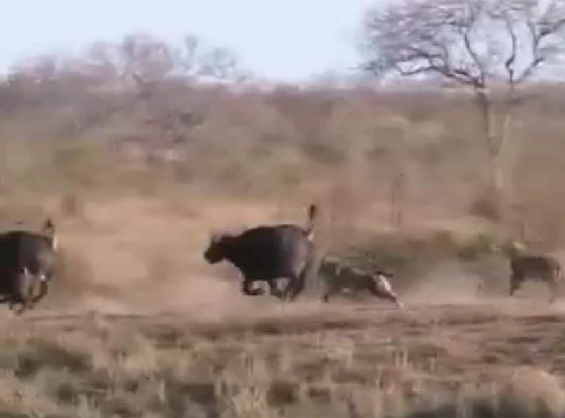 Turyści na safari w południowafrykańskim parku narodowym nie spodziewali się takiego rozwoju wydarzeń. Zatrzymali się przy rzece, by poobserwować bawoły leniwie zmierzające do wodopoju. Ale do rogatego stada zaczęły skradać się lwy. I nagle wypadki potoczyły się bardzo szybko.