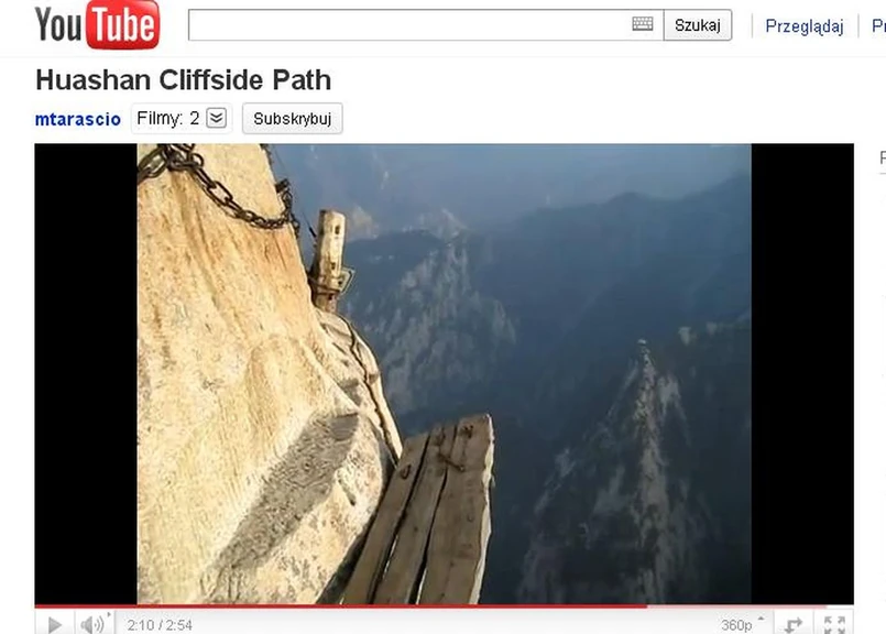 Wielbiciele gór chodzą różnymi drogami. Ten śmiałek zasługuje na prawdziwy podziw. Oto jego spacer "górską ścieżką" w Chinach.
