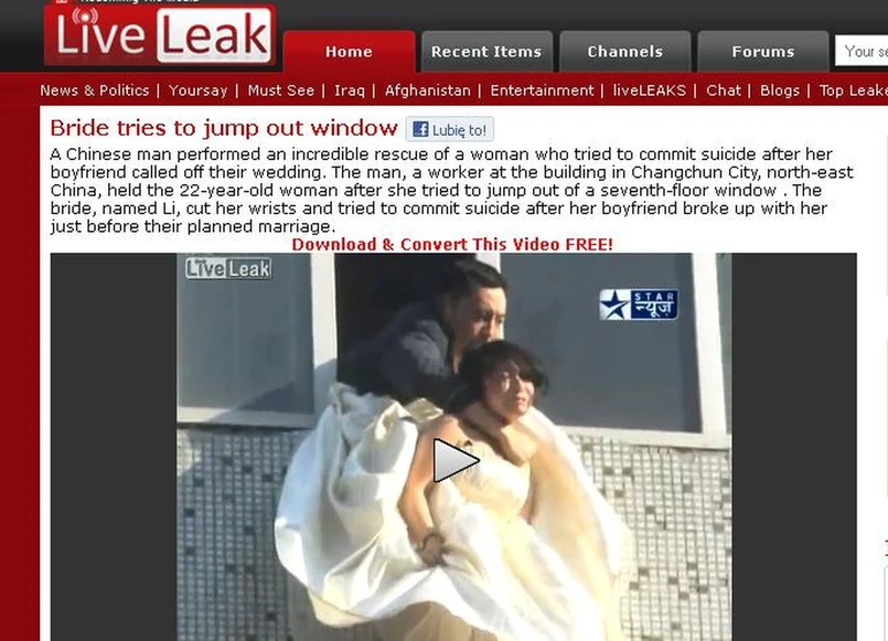 Dramatyczne sceny w jednym z chińskich miast. Kobieta w stroju panny młodej, zdradzona tuż przed ślubem, wisi za oknem. Chce popełnić samobójstwo. Rozpoczyna się dramatyczna walka o jej życie.