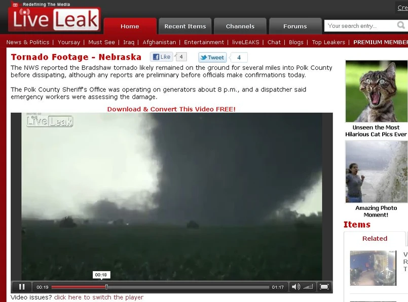 Ten widok zapiera dech w piersiach - jadący samochodem świadek sfilmował gigantyczne tornado, przechodzące akurat przez miejscowość Bradshaw w amerykańskim stanie Nebraska. Zobacz sceny jak z końca świata!