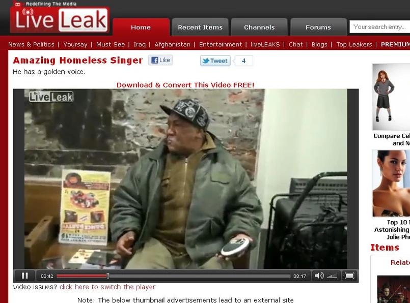 Jeszcze niedawno gwiazdą internetu był Ted Williams - bezdomny, który elektryzował słuchaczy głębokim, radiowym głosem. Oto jego następca - również bezdomny, tym razem utalentowany wokalnie mężczyzna. Jego śpiew jest doskonały - posłuchajcie sami!