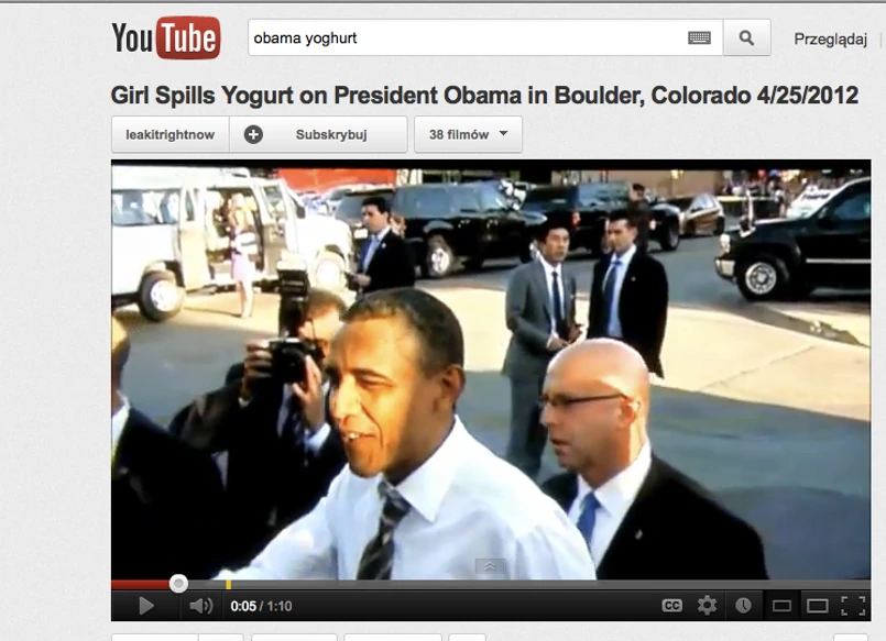 Prezydent Stanów Zjednoczonych Barack Obama został oblany jogurtem przez pewną młodą dziewczynę podczas spotkania w mieście Boulder w stanie Kolorado. Oczywiście kobieta zrobiła to niechcący. Obama z humorem skwitował całe zajście, mówiąc do niej: - Będziesz miała o czym opowiadać. Oblałaś jogurtem prezydenta!