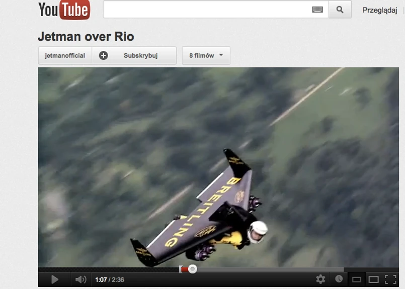 Yves Rossy to szwajcarski pilot wojskowy, ale świat zna go pod pseudonimem Jetman. Skąd się on wziął? Długo by tłumaczyć... Przekonaj się sam, oglądając jego lądowanie na plaży Copacabana. Imponujące!