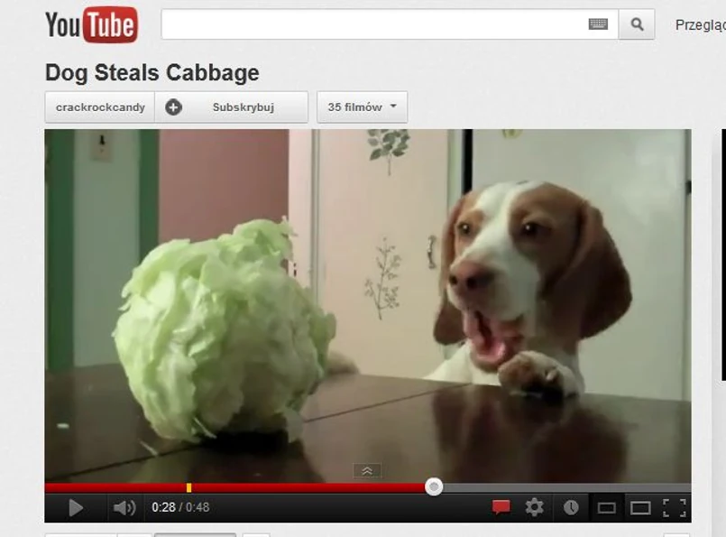 Psy lubią kiełbasę? To prawda, choć są przedstawiciele tego gatunku, skłonni włożyć wiele wysiłku w to, by dorwać się do zwykłej, surowej kapusty. Zobaczcie tego uroczego złodziejaszka - łakomczucha.