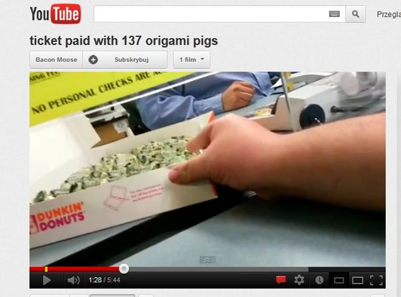 Nikt nie lubi płacić mandatów. Ten Amerykanin, postanowił jednak wyrazić swoje niezadowolenie w wyjątkowo oryginalny sposób i przyniósł na policję 137 banknotów ułożonych w świnki origami. Jak wyznał dowcipniś, chciał w ten sposób wyrazić, co sądzi o policjantach i ich fotoradarach. Zobacz, jak to się skończyło.