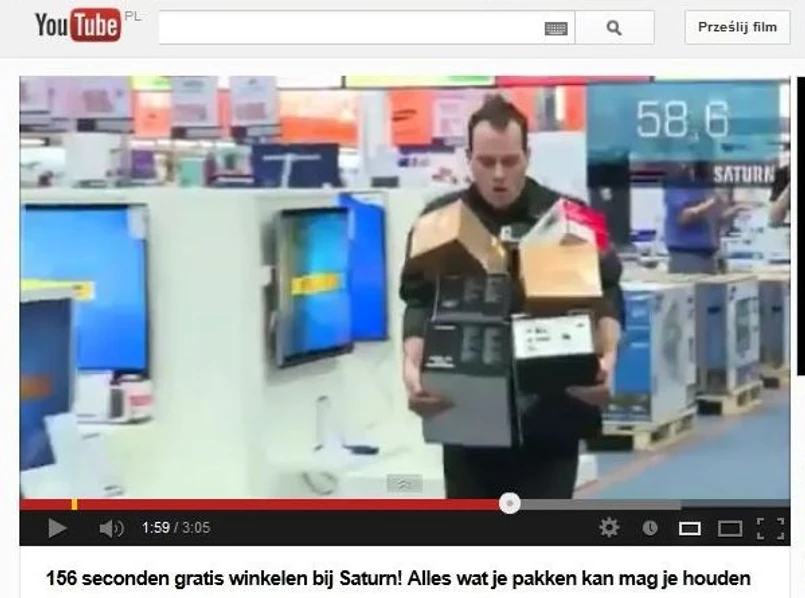 Darmowe zakupy to świetna sprawa, problem pojawia się jednak wówczas, gdy mamy na nie tylko 156 sekund. Ten mężczyzna w sklepie ze sprzętem RTV/AGD zdołał w takim czasie zgarnąć sprzęt o wartości niecałych 30 tys. euro. Zobacz, jaką obrał strategię.