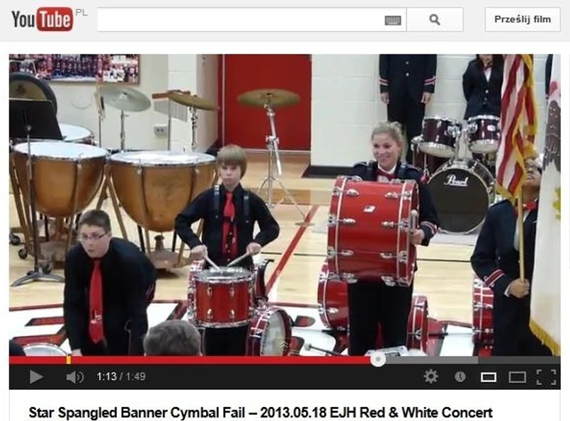 Wykonanie hymnu narodowego, w dodatku na oczach całej szkoły, to bardzo stresujące zadanie. A co jeśli muzyk z pierwszego rzędu zaliczy spektakularną wpadkę? Jeśli zachowa zimną krew, może wybrnąć z tej krępującej sytuacji z klasą. Zobaczcie jak poradził sobie ten nastolatek. Jak sądzicie, czy szkolni koledzy bardzo się z niego później naśmiewali?