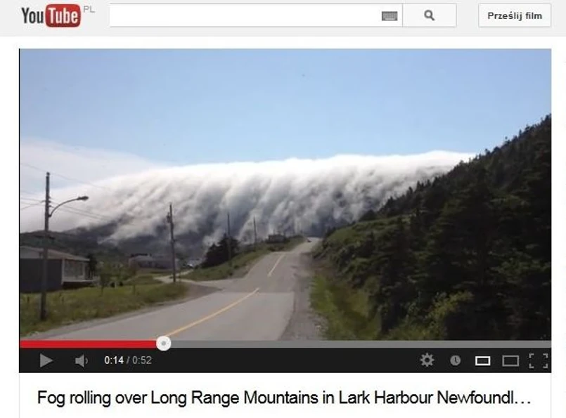 Na pierwszy rzut oka, zjawisko zarejestrowane na nagraniu, wygląda jak olbrzymia fala tsunami. Tymczasem okazuje się, że jest to jedynie intensywna mgła, spowijająca góry na zachodnim wybrzeżu Nowej Funlandii.