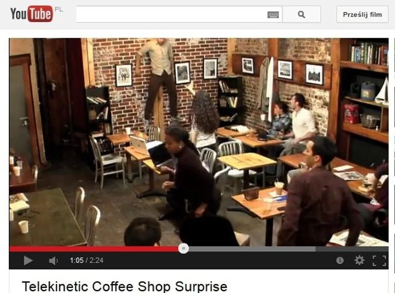 Klienci pewnej nowojorskiej kawiarni doznali szoku, kiedy zobaczyli na własne oczy prawdziwą wiedźmę. Kobieta, której mężczyzna niechcący wylał kawę na komputer, rzuciła nim o ścianę, a następnie, nie ruszając się z miejsca, poprzesuwała kawiarniane stoliki. Widok był przerażające, na szczęście wszystko okazało się jedynie świetnie przygotowanym żartem, który błyskawicznie stał się hitem sieci.