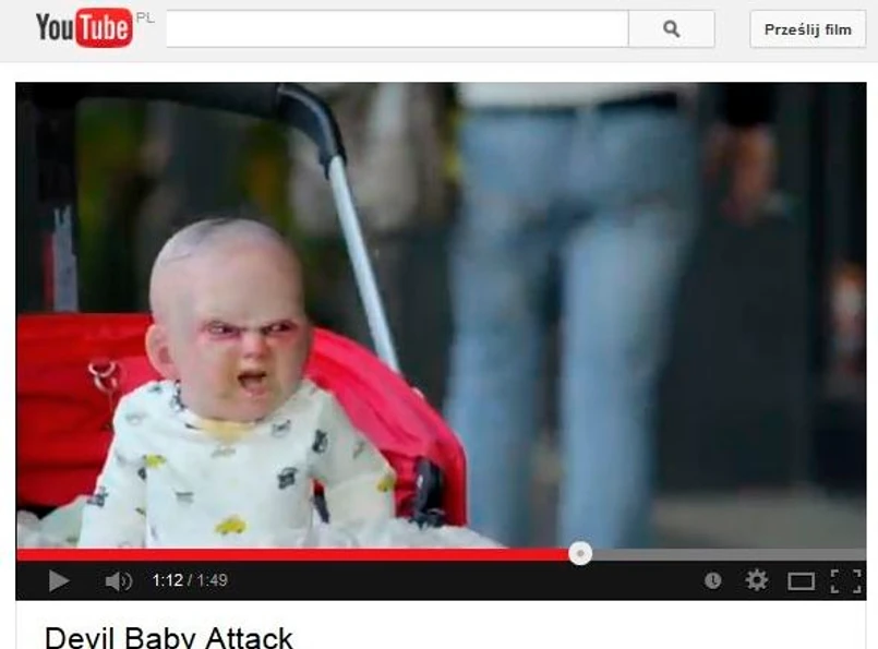 Widok wózka z dzieckiem u większości osób wywołuje pozytywne uczucie. A jak zareagują, gdy spod kołderki wyskoczy prawdziwie szatański bobas. Zobacz reakcje przechodniów na okrutny żart.
