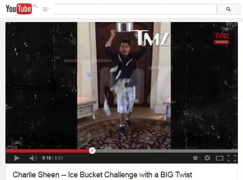 Niepokorny aktor postanowił wprowadzić małą zmianę i kubeł zimnej wody z lodem zastąpił ... dolarami. Sheen obsypał się banknotami o wartości 10 tys. dolarów, które zadeklarował przeznaczyć na charytatywny cel. Do wykonania jego wersji "splasha", aktor nominował scenarzystę i producenta Chucka Lorre oraz Jona Cryera i Ashtona Kutchera, odtwórców głównych ról w serialu "Dwóch i pół", z której on sam został z hukiem wyrzucony: