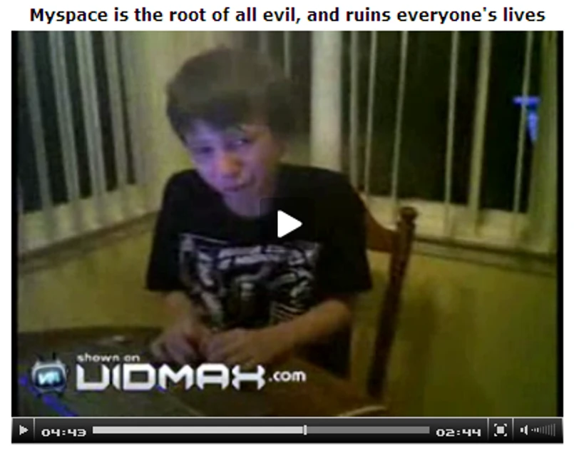 Dla celów rozrywkowo-edukacyjnych starszy brat skasował wszystkie komentarze na koncie MySpace brata młodszego. Oczywiście reakcję uwiecznił kamerą.