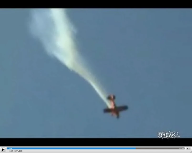 Prośba dla kręcących pokazy lotnicze - drży ci ręka, odjedź zoomem. Pilota tylko szkoda. Mało prawdopodobne, by przeżył taką kraksę.