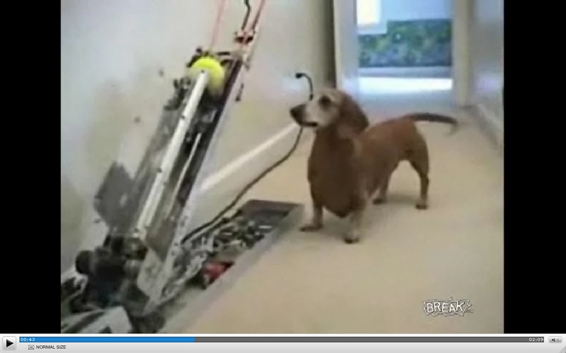 Pomysłowy, aczkolwiek nieco leniwy, właściciel tego jamnika zbudował mu maszynę strzelającą piłkami tenisowymi. W pełni zautomatyzowana i prosta obsługa pozwalają psu bawić się aż do upadłego.