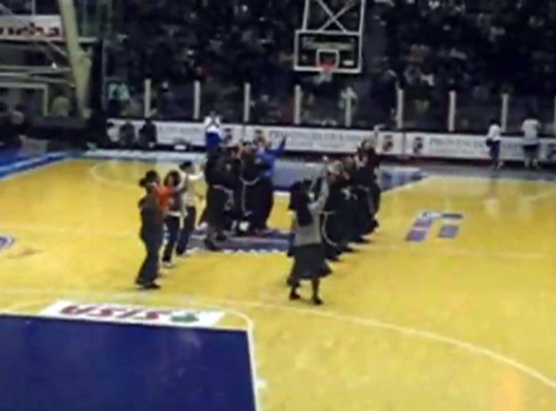 Jak dotrzeć do rozerotyzowanej i laickiej młodzieży? Podmieniając franciszkańską zakonnicą w habicie półnagą czirliderkę w lateksie. Zdaje się, że działa i młodzież czuje się nawrócona. Przynajmniej włoska, w hali sportowej miasteczka Sassari.