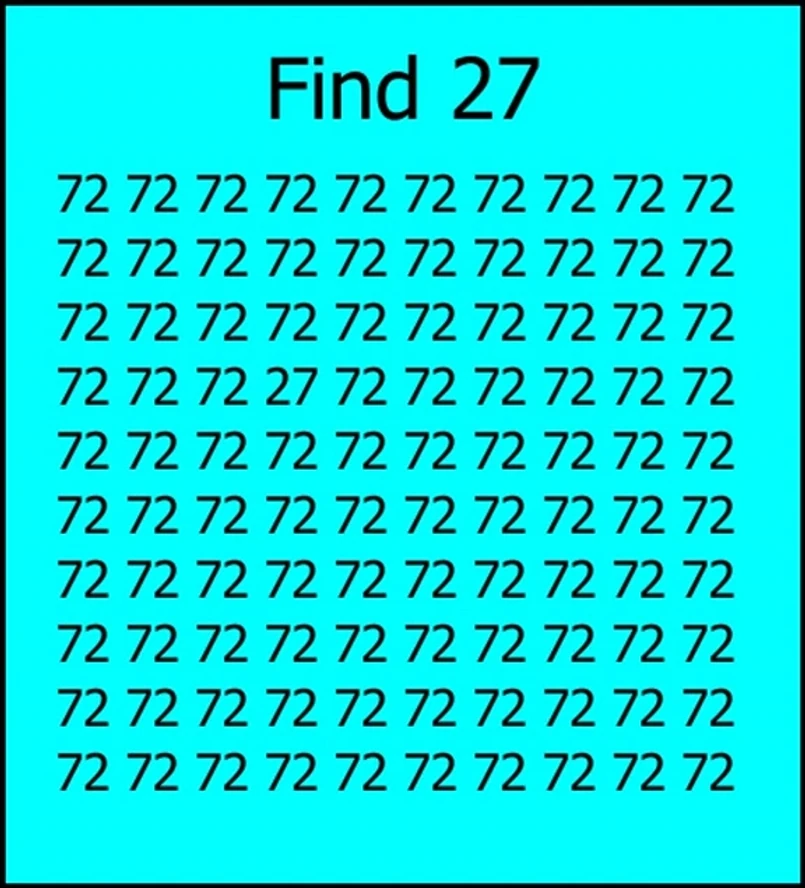 W ciągu stu liczb 72 ukryto na obrazku liczbę 27. Czy uda się wam ją znaleźć?