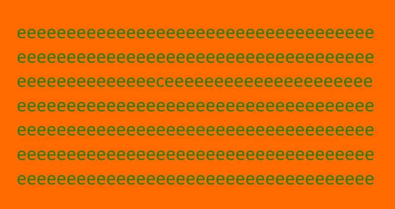 Tego rodzaju zgadki wzrokowe są najtrudniejsze. Kilka rzędów literki e, ale czy na pewno. Znajdziesz wśród nich ukrytą literkę c. Sprawdź się? Ile sekund ci wystarczy?