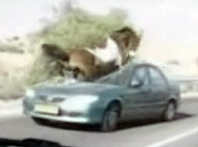 Ten dramatyczny film został nakręcony w północnym Izraelu przez turystów, którzy akurat filmowali stado galopujących po autostradzie koni. Nagle jeden z rumaków wpadł na przejeżdżający samochód.