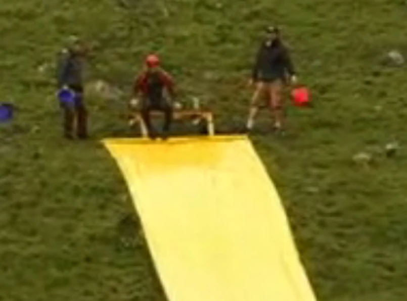 Kiedy się patrzy na ten wyczyn, ciśnie się jedno pytanie: czy ten śmiałek ma dobrze w głowie? Tak naprawdę nie wiemy, czy pobił rekord świata w ryzykownej dyscyplinie, ale dla nas to na pewno jest rekord... głupoty. Wystarczyło chybić o włos, a skończyłoby się tragicznie. Zobaczcie.