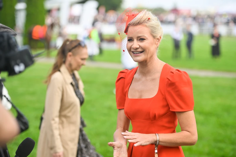 To był dzień pełen niezapomnianych wrażeń. Majestatyczne konie galopujące po torze, rodziny i przyjaciele wspólnie cieszący się atmosferą wydarzenia i przepiękne stylizacje inspirowane latami 60. to wszystko zapierało dech w piersiach! - napisała na swoim Instagramie. Aktorka wybrała na tę okazję rzucającą się w oczy pomarańczową kreację.