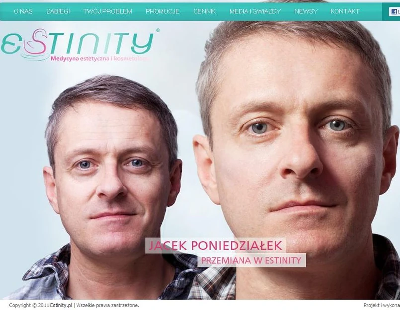 Jacek Poniedziałek, który jest znany szerszej publiczności z roli w serialu "M jak miłość", reklamuje usługi warszawskiej kliniki medycyny estetycznej Estinity.