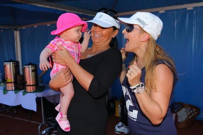 Panie spotkały się podczas 10. edycji Bałtyckiego Turnieju Tenisowego Artystów i Aktorów – „Baltic Cup Pogorzelica 2012”. Skrzynecka stara się wszędzie zabierać ze sobą maleństwo i tak też było tym razem.