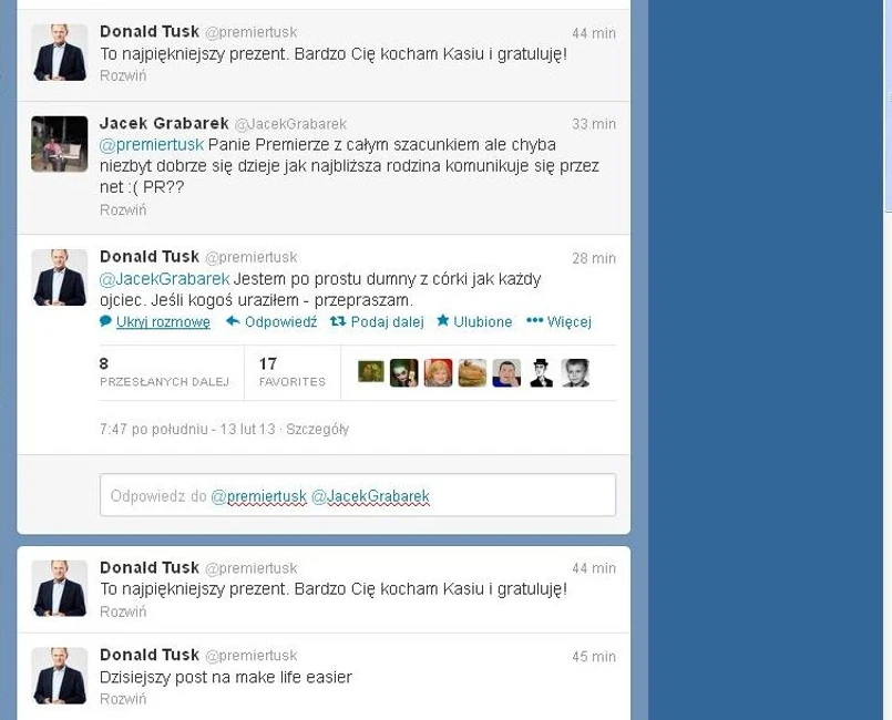 Nie wierzę, żeby @premiertusk pisał o 2. urodzinach bloga swojej córki. To jest po prostu niemożliwe. Są chyba ważniejsze sprawy - piszą przeciwnicy dosyć intymnego wpisu Tuska.
