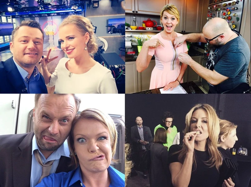7 Ewa Wachowicz na planie swojego programu kulinarnego. Tę fotkę, gwiazda podpisała zabawnym podpisem: "Suwaczek hałasuje...a dźwiękowiec pcha łapki, gdzie nie trzeba:-)))"
