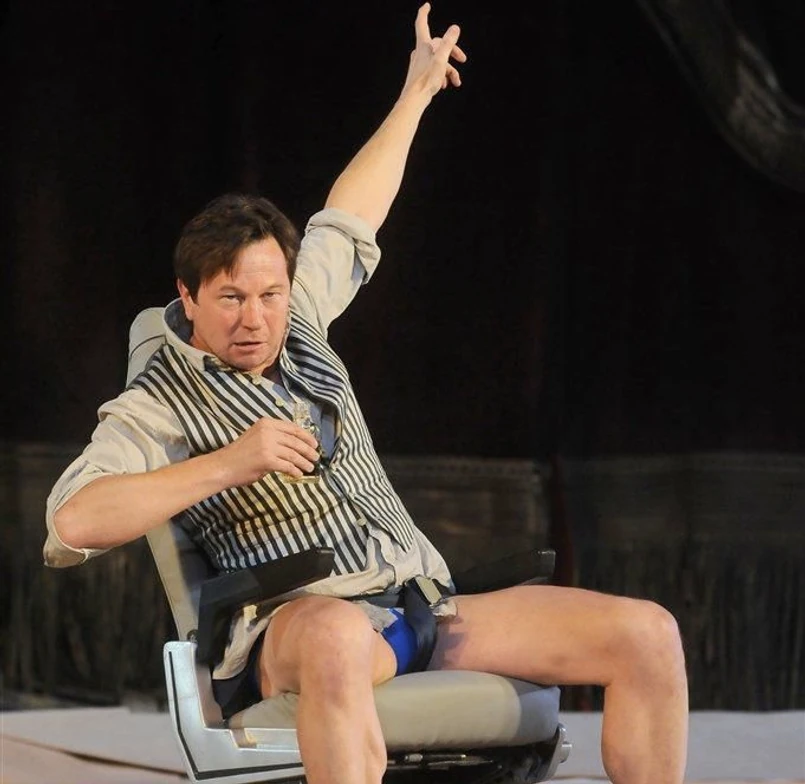 Piotr Cyrwus na deski teatru wrócił po 25 latach. W sztuce wcielił się w postać Sir Andrzeja Chudogęby.