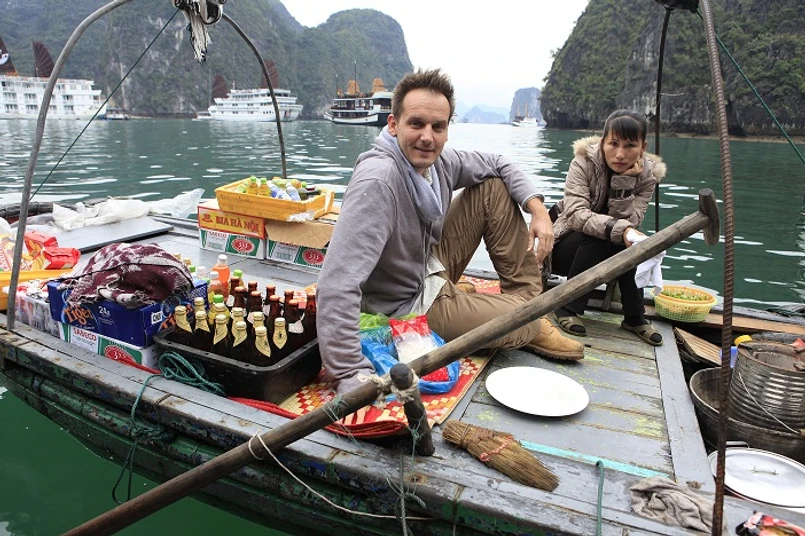 Odwiedził dom na palach należący do rybaka mieszkającego na morzu. Razem z Thianem wybrali się na nietypowy połów małży. Stosowana w tym rejonie technika wymaga cierpliwości, odporności na słońce i umiejętności pływania… na nietypowej desce surfingowej. Połów tym razem nie zakończył się spektakularnym sukcesem, ale małży wystarczyło akurat na jedno danie.