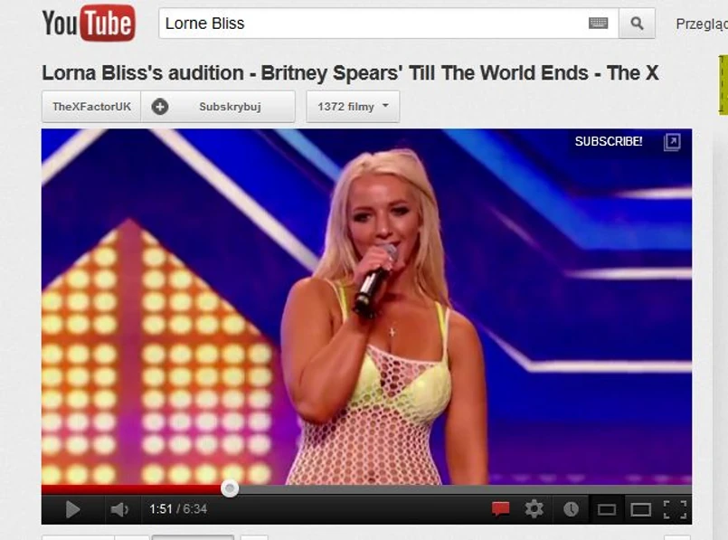 W ostatnim odcinku brytyjskiego "X Factor", występ 33-letniej Lorny Bliss wzbudził prawdziwą mieszankę emocji. Uważająca się za sobowtór Britney Spears uczestniczka wyznała, że zrobi wszystko by być sławną i występować w telewizji. Obietnicy dotrzymała, wychodząc na scenę w bardzo skąpym stroju i serwując jeden z najdziwniejszych występów w historii talent show.